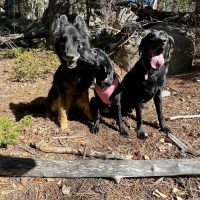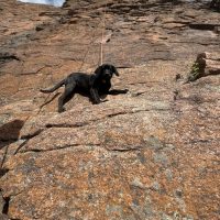 When she gets tired, Daisy is the sweetest little cuddler. She loves snuggling up next to us or laying right next to (or on top of) her big brother. She loves outings, whether it’s for a little hike or to the crag to hang with us while we rock climb. She also enjoys going to daycare once a week, where she’s learning to be social with other dogs. She loves attention, treats, toys, and her big brother. Our life would definitely be emptier without her.