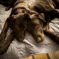 We are so happy to have found Daisy through SHLR. She has been the perfect addition to our pack. When we got Daisy a few months ago, we had two other dogs – an older Labrador, Puck, and a 6-year-old German Shepherd, Landy. Daisy immediately became a part of the pack and enjoyed playing with both her brothers. Unfortunately, we lost Landy last month unexpectedly. Thank God for Puck that we had Daisy to keep him company – he would have been so sad with his brother gone if he were left as the only dog left in the pack. But with Daisy here, he’s had a little fur ball of love to remind him how much fun it is to be a big brother. He and Daisy have so much fun playing together; she’s made my grumpy old man 12-year-old Lab a puppy again. In the mornings, I often have to separate them because they’re having SO MUCH fun playing that the noise gets a little out of hand.