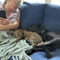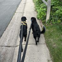 Joey is living the Lab life of her dreams with her new parents, Elyse and John, who are very impressed with all the progress their new pup is making. Her new big sister, Minou, on the other hand, has been a bit less dazzled by the new addition but will allow a bit of cuddling now and then.Joey’s parents tell us: