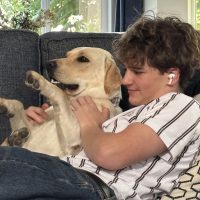 Her personality is adorable—she lies in the most awkward, human-like positions. She loves car rides, splashing in the water, and greeting every dog like a new best friend. Livy has brought calm, joy, and so much laughter into our home. We are completely smitten and can’t imagine life without her. Our girl is the perfect addition, and we feel so lucky she’s ours.