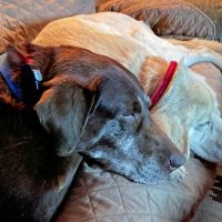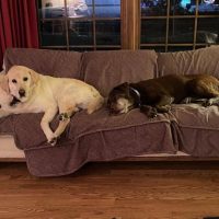 Over the years we’ve found that having two Labradors keeps life exciting. The dogs enjoy being together. It is a gift to be able to keep up with our two “senior” dogs. Zeus and Malcomb are both gentle dogs. Their previous owners cared for them and now we have the opportunity to share our lives with them. We are grateful for all that Safe Harbor Lab Rescue does to support not only the dogs but also their new forever owners.