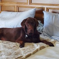 Life with our Pippa was such a blessing. She brightened our lives with her sweet disposition, her greeting of everyone she met, her love of the water, special treats, playing fetch, and laying on her “Pippa blanket” when we allowed her on the bed to cuddle.