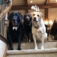 In honor of our three Safe Harbor Labs (Gunter-8, Moka-6, and Buddy-7) from left to right. My wife thinks the dogs have figured out Santa comes up from the basement and not down the chimney.